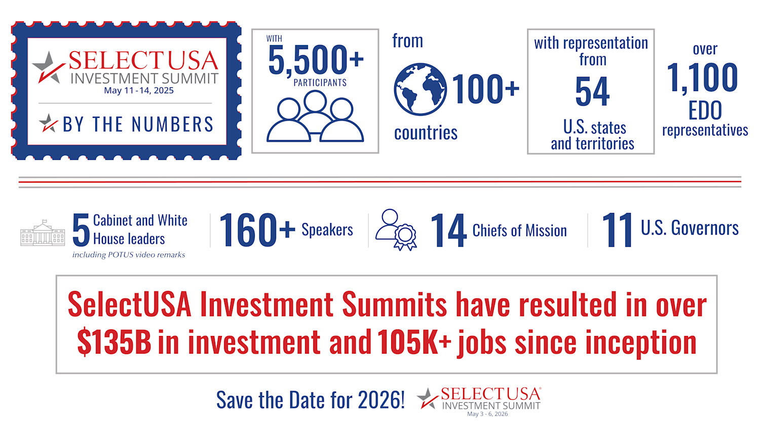Join us at the 2026 SelectUSA Investment Summit at the National Harbor, Maryland from May 3 - 6, 2026, to establish new connections and explore business opportunities through investing in the United States.